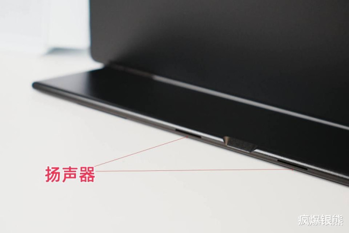 屏幕底座中间还有两个扬声器,整体品质和音量只能说聊胜于无,勉强可用。